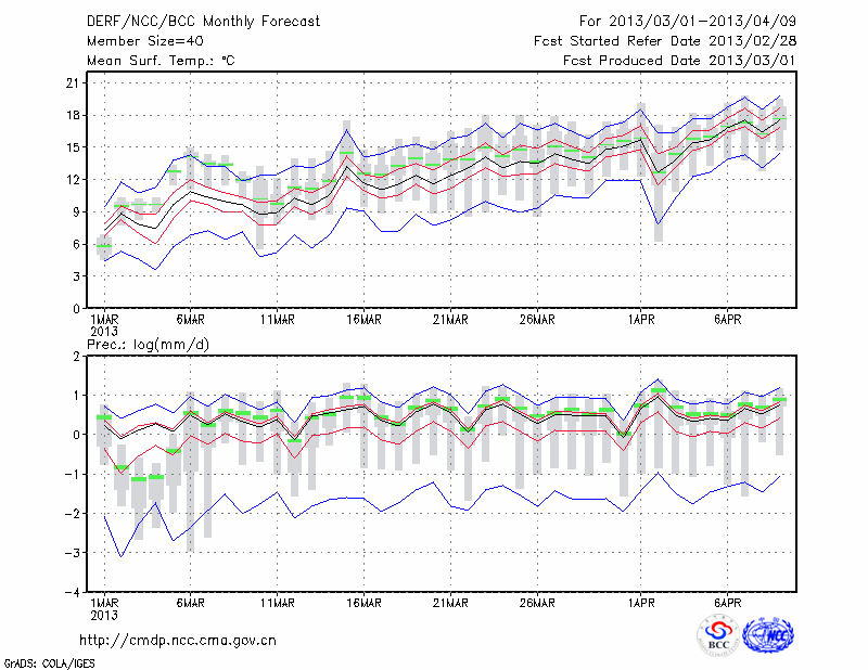 恩 施 (LAT:30.28 LON:109.47) 2013-03-01        预测