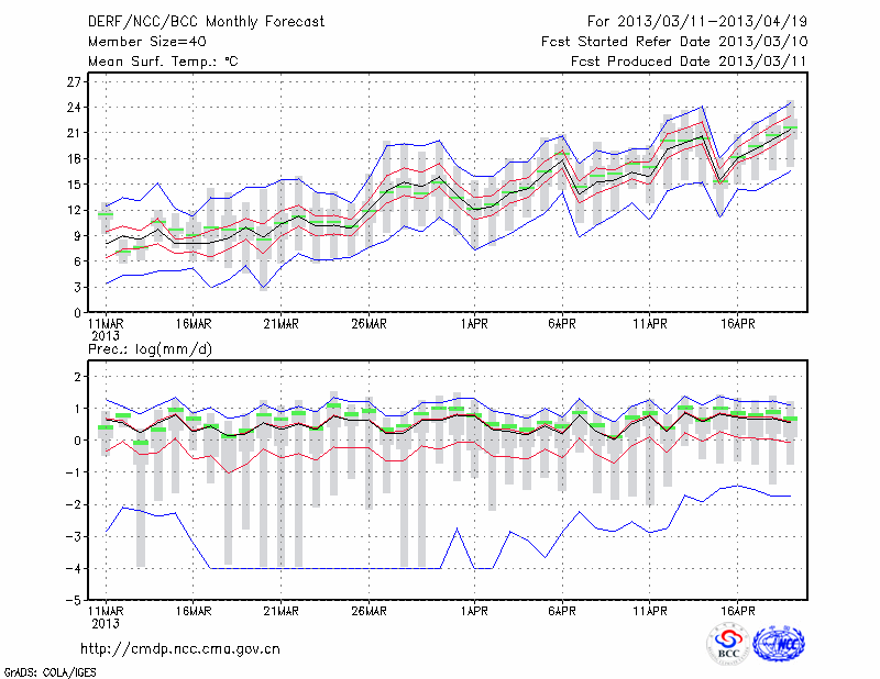 合 肥 (LAT:31.87 LON:117.23) 2013-03-11        预测