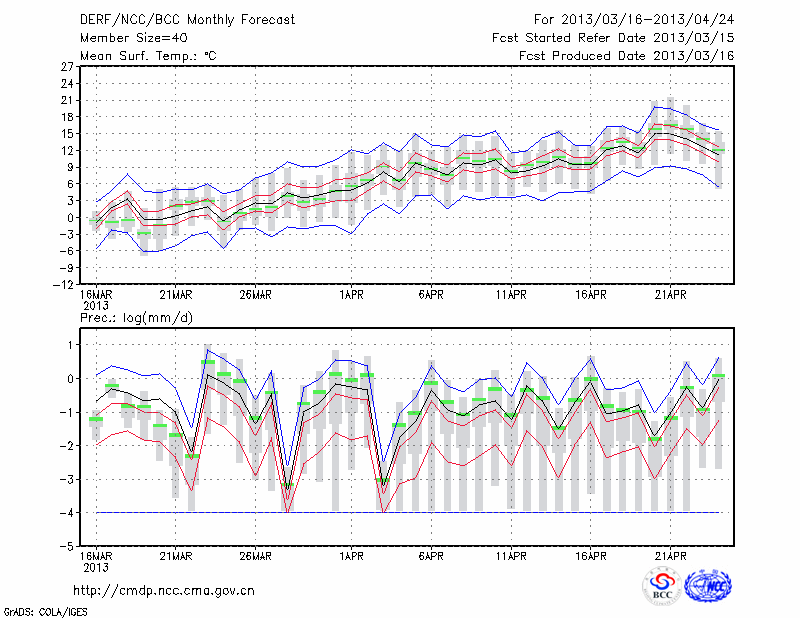 赤 峰 (LAT:42.27 LON:118.97) 2013-03-16        预测