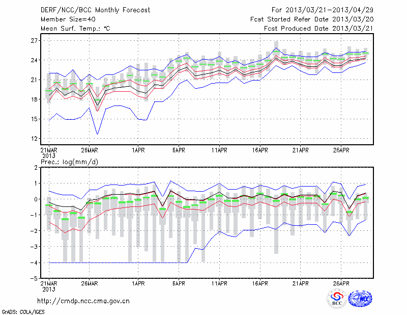 蒙 自 (LAT:23.38 LON:103.38) 2013-03-21        预测