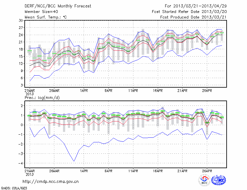 岳 阳 (LAT:29.38 LON:113.08) 2013-03-21        预测