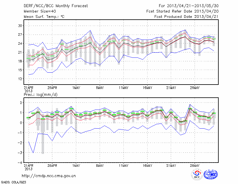 宜 昌 (LAT:30.70 LON:111.30) 2013-04-21        预测