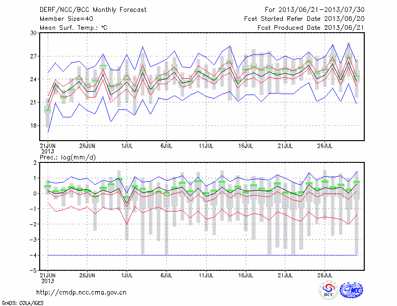 赤 峰 (LAT:42.27 LON:118.97) 2013-06-21        预测