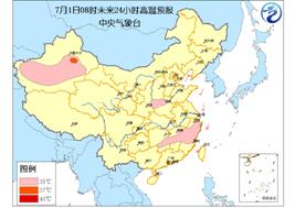 中央气象台通过编制程序将MICAPS格式的高温预报数据转换为清楚直观的GIF图片输出,为高温热浪网站提供逐日预报资料,同时也便于服务。中央气象台一共提供了7、8月份的08时1-7天高温预报图片。